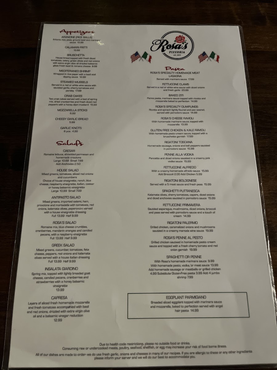 Rosa's also caters to families with a dedicated kids’ menu, offering favorites like Kids Spaghetti and Chicken Strips for just $8.99. Beyond pizza, diners can indulge in delicious entrees like the renowned chicken parmesan, praised for its perfect batter and flavorful marinara.
